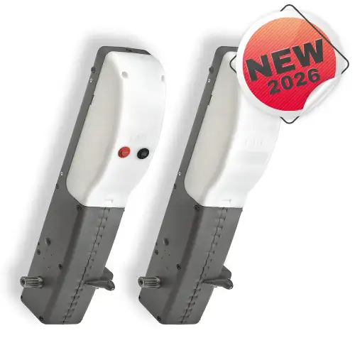 P-100SPIN12LQ DC garage door opener with encoder, complete with built-in electronic control unit (K995M-B) and 433,92 MHz single-channel radio receiver.