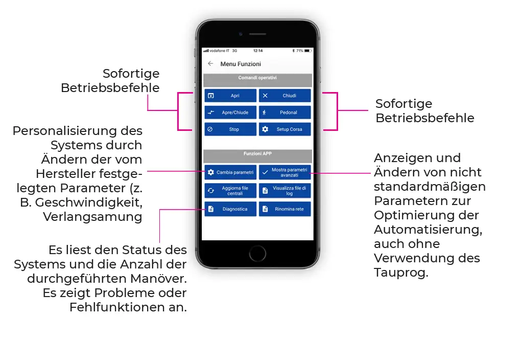 Um die TauApp verwenden zu können, muss das Kommunikationsgerät 2,4 GHz T-Wifi an den Steuereinheiten (Diamond-Serie: D749MA, K206MA und K126MA) installiert werden.