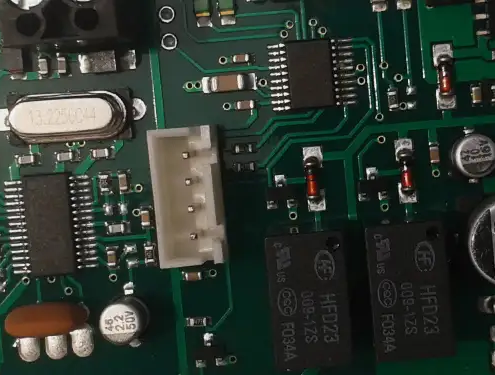 Schranke, die dank optionalem Akku auch bei Stromausfall funktioniert. Batterieladegerät in der Platine integriert.