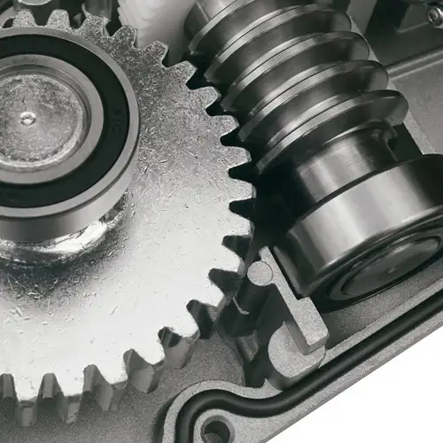 The last stage of reduction consists of a large carbon steel gear (MOD.3) coupled with a metal worm screw which safeguards its integrity in the event of a collision.