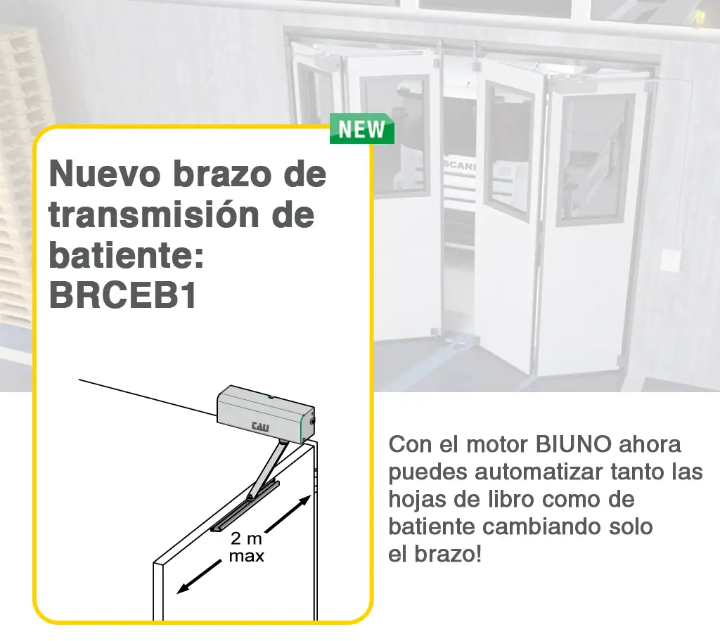 Para las puertas de libro están disponibles dos brazos telescópicos diferentes para hojas hasta 1,2 m y hasta 1,5 m