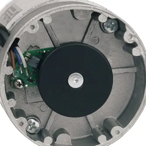 La détection de l’obstacle ainsi que la sécurité est assurée par l’encodeur optique. L’encodeur contrôle le ralentissement en ouverture et fermeture ainsi que les manœuvres du portail en évitant le fin de course.