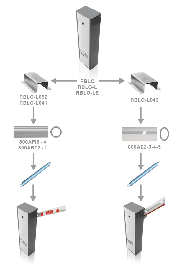 Vi segnaliamo che dal 1° luglio 2018 entreranno in vigore i nuovi codici delle barriere automatiche della Serie RBLO, per permettervi di acquistare la barriera in modo più semplice e personalizzato possibile. Si è preferito dividere i componenti e ogni scelta è determinata dal suo utilizzo e dagli accessori che si vogliono aggiungere.