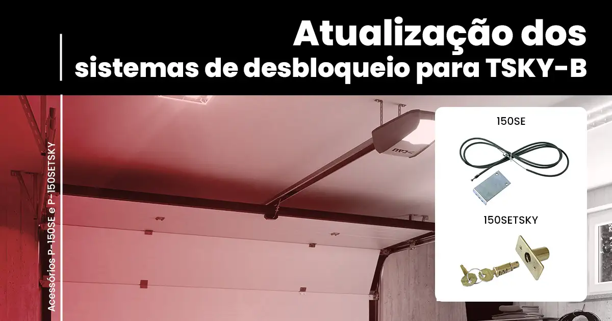 Gostaríamos de informar que efetuamos alterações para garantir o correto funcionamento dos sistemas de desbloqueio P-150SE e P-150SETSKY com as novas guias de deslizamento de correia 100BINBELT-T / 100BINBELT3-T / 100BINBELT350-T / 100BINBELT4-T e de corrente 100BINCHAIN-T / 100BINCHAIN3-T / 100BINCHAIN350-T / 100BINCHAIN4-T. Esses sistemas foram atualizados com a adição de um novo suporte S-150SE00080.